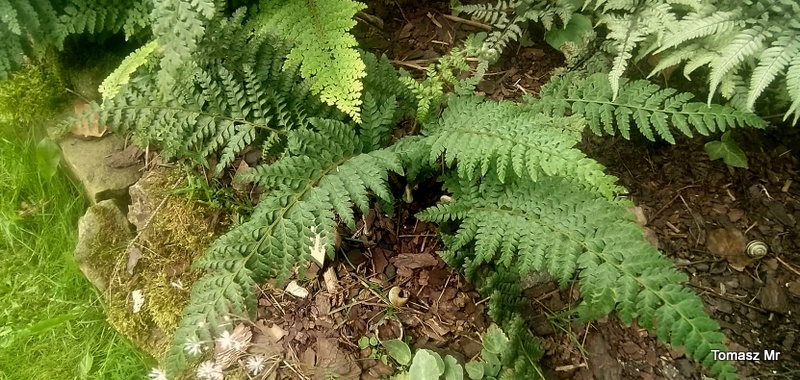 Mój egzemplarz Polystichum dracomontanum rośnie w miejscu mało dla mnie dostępnym, więc nieczęsto do niego zaglądam. Dlatego też ze zdziwieniem zauważyłam, ile serc wytworzył. Do tego są one od siebie oddalone, co jest raczej rzadkie u paprotników.
