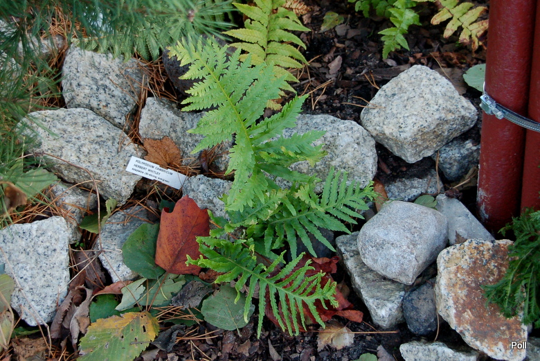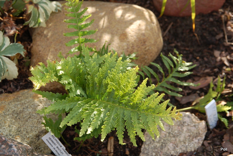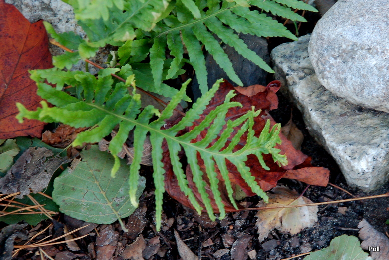 Paprotki niezbyt dobrze u mnie rosną, a jednym w wyjątków jest Polypodium cambricum 'Herbert Whitley'. Co dziwne, rośnie w cienistym i dość wilgotnym miejscu.