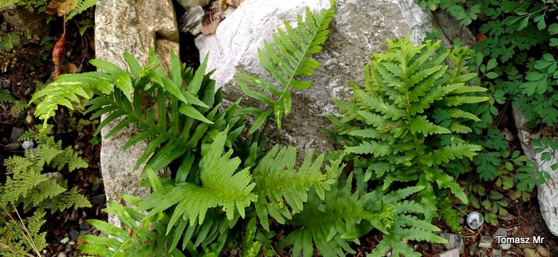 Polypodium cambricum'Herbert Whitley' rośnie u mnie od kilku lat. Dość późno rozpoczyna wegetację, ale to cecha wszystkich paprotek walijskich. Całkiem dobrze się rozrasta. Liście mocno zróżnicowane.