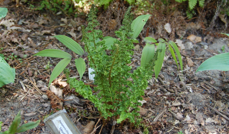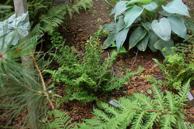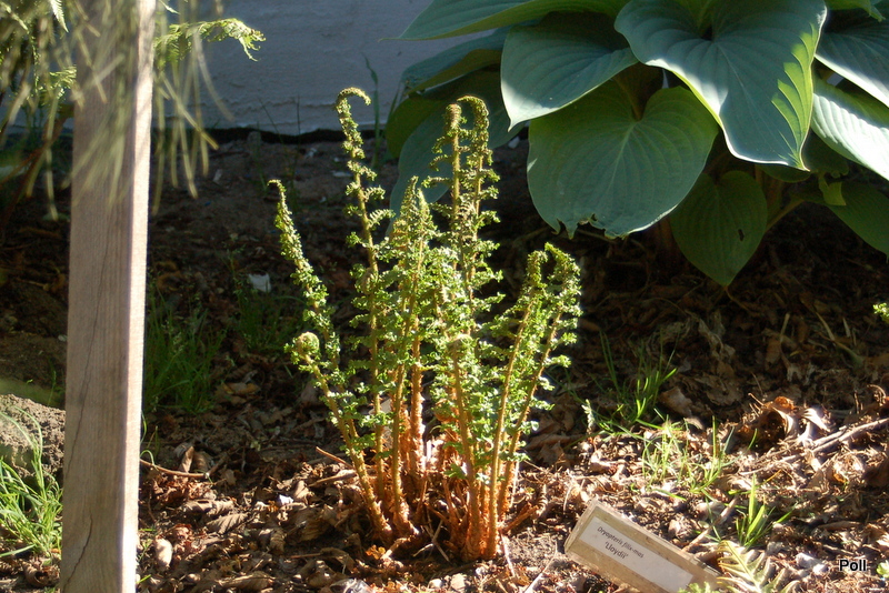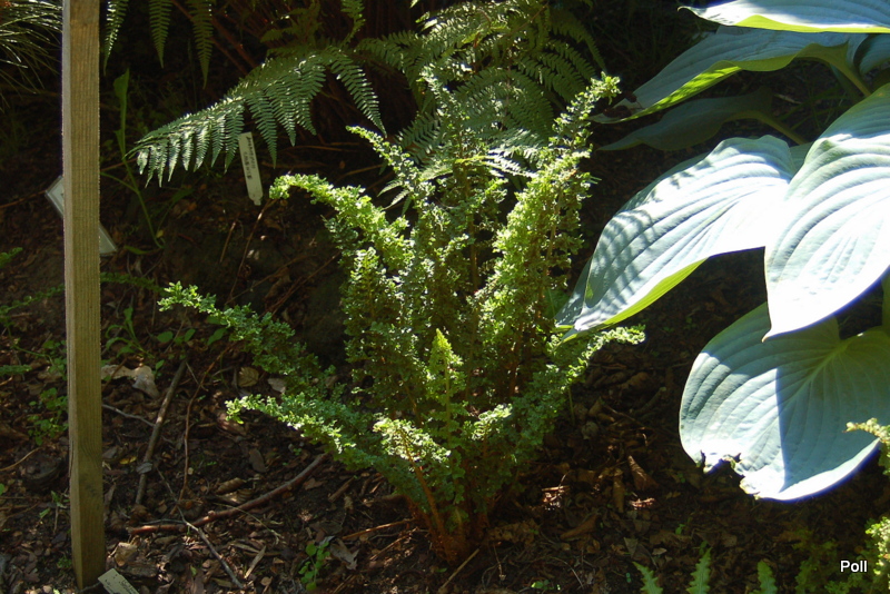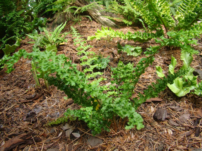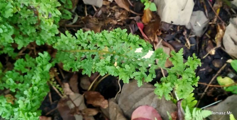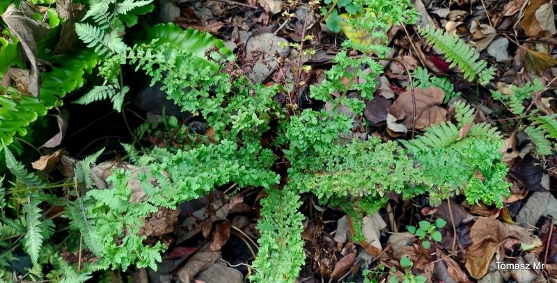Dryopteris filix- mas Lloydii, jedna z ładniejszych, bardziej ozdobnych form nerecznicy samczej. Rosną w dość mocnym cieniu, ale rankiem dochodzi do nich nieco promieni słonecznych.