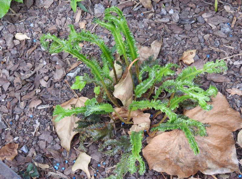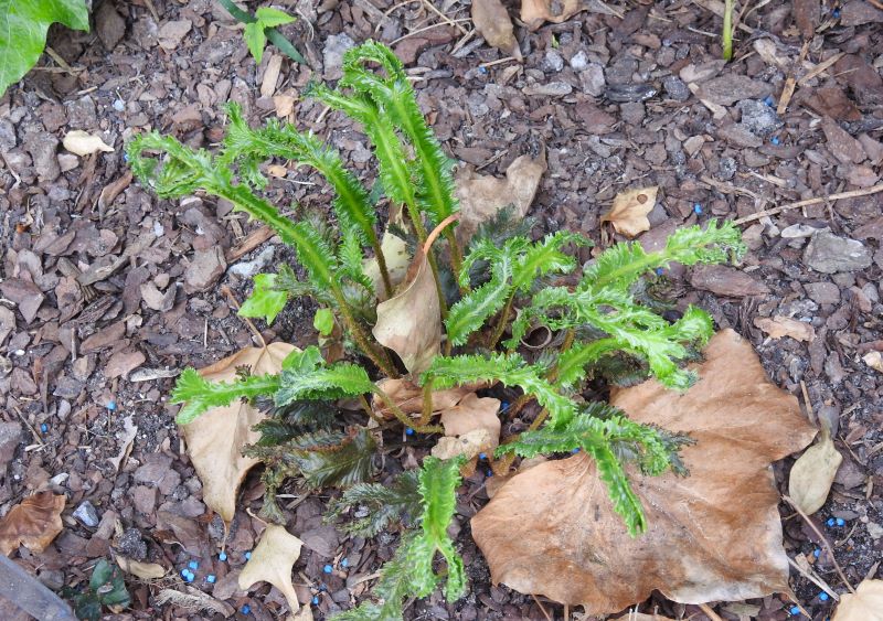 Jak widać, w ciągu 2 miesięcy, które dzieli zdjęcia czernienie nie objęło wszystkich frondów a przecież trochę tej jesieni i już zimy ciapało... może naturalne ciapanie ECV znoszą lepiej niż nadmierną troskę człowieka... :P sprawdziłam też, czy poczerniałe frondy pociągnięte, wychodzą, ale nie, u mnie trzymają się mocno kępy... pozostaje zatem czekać do wiosny zwyc