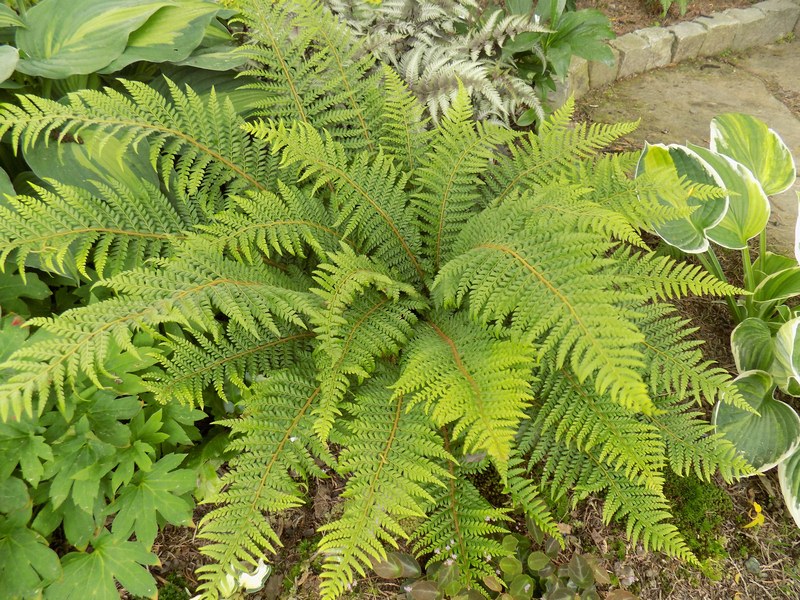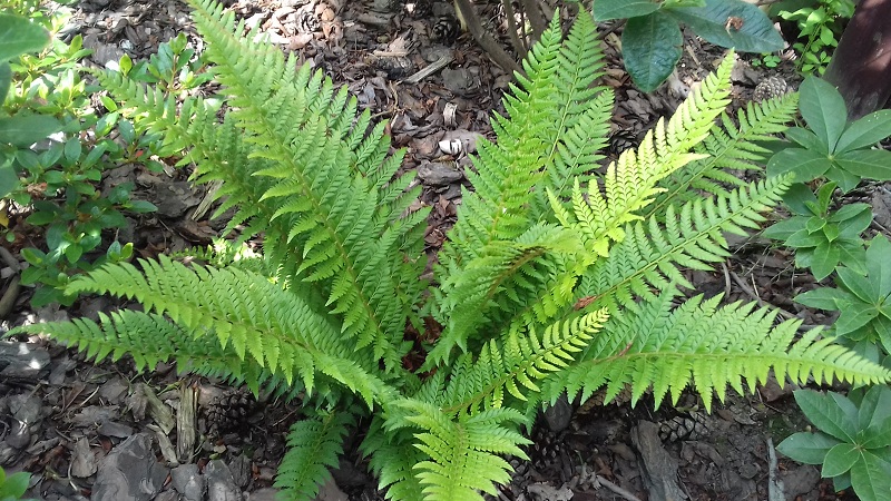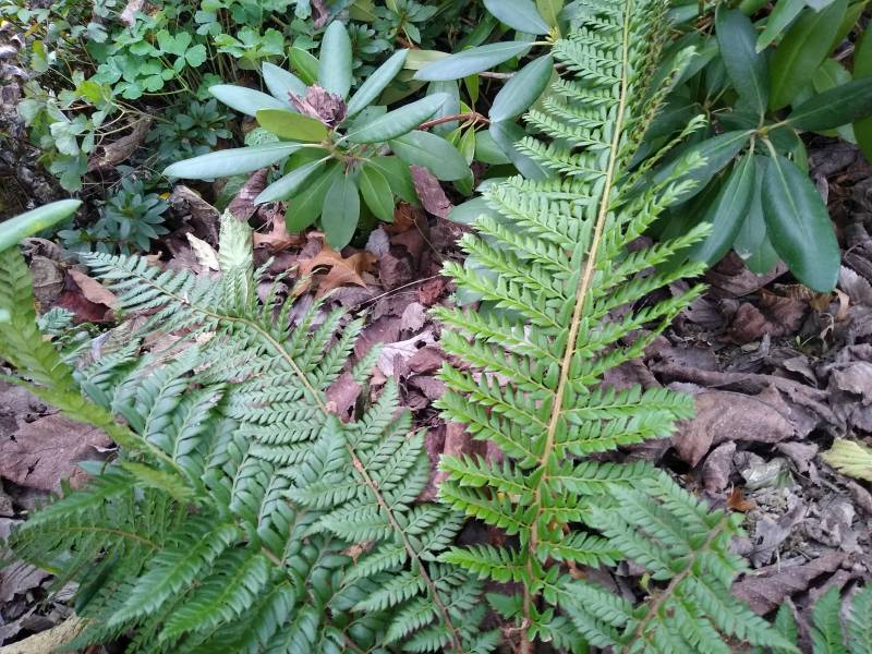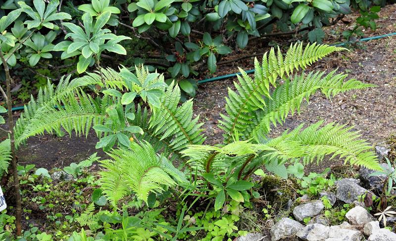 Polystichum aculeatum which has been planted by me at the small, shady "stone garden" at my parents' propperty in Styria, Austria.