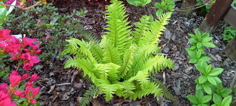 The fern does still grow well, having very rigid fronds as typical with