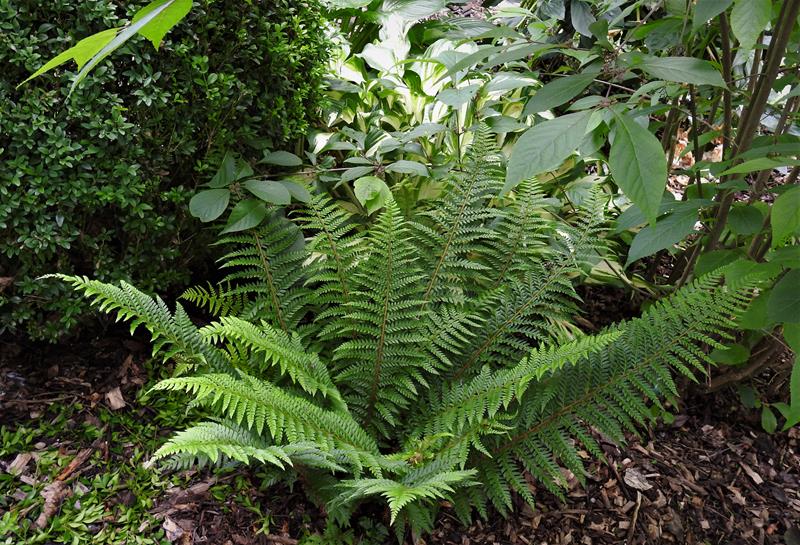 Paprotnik kolczysty,zeszłoroczne nasadzenie.Nie jest jeszcze pokaźny, ale ładnie się zapowiada.