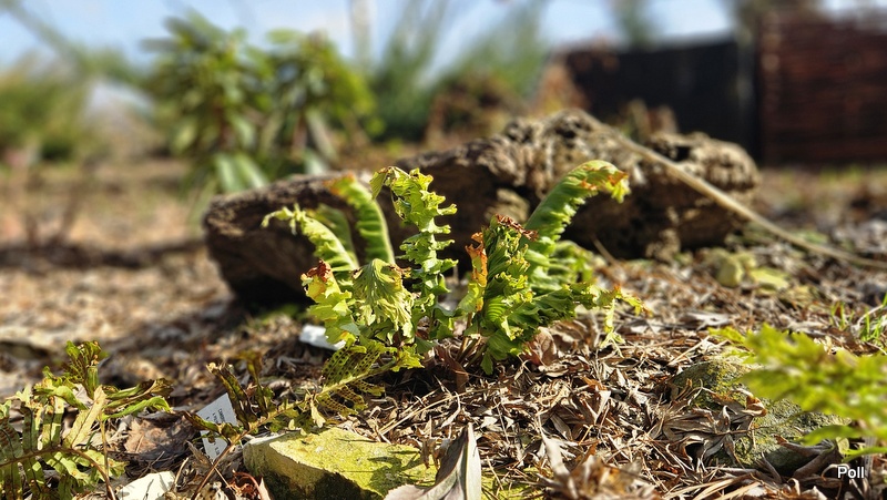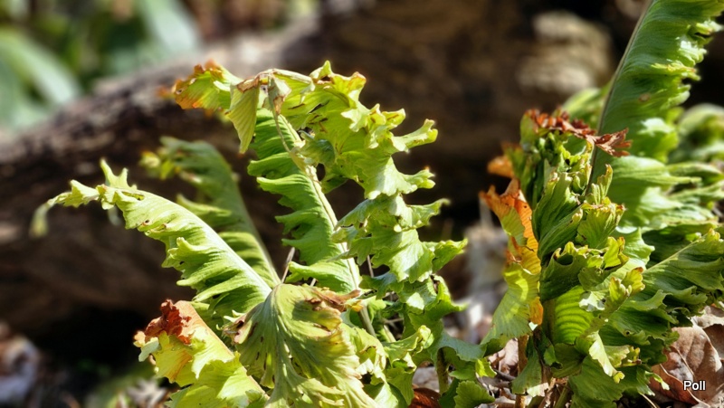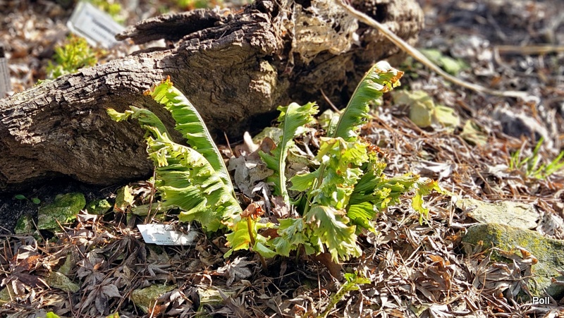 Asplenium scolopendrium 'Apple Court' jest trochę przypalony po zimie, ale póki co, nie jest źle.