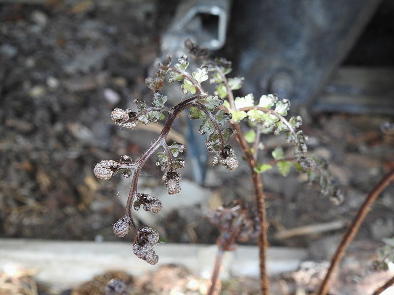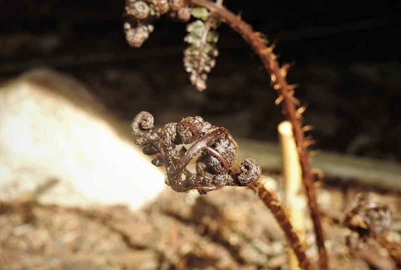 Athyrium vidalii schyla już liście po ostatnich przymrozkach, ale wciąż prezentuje się dekoracyjnie.