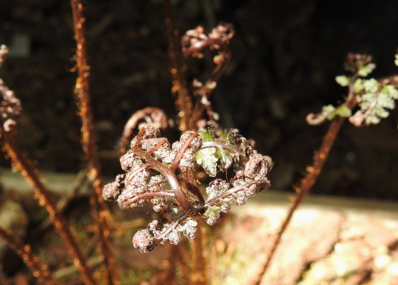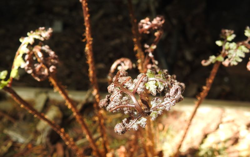 Athyrium vidali, kiedyś u mnie wymarzła...ale wtedy były zimy z 20 stopniowymi mrozami. W tym roku dość późno wystartowała dzięki czemu ominęły ją wiosenne przymrozki.