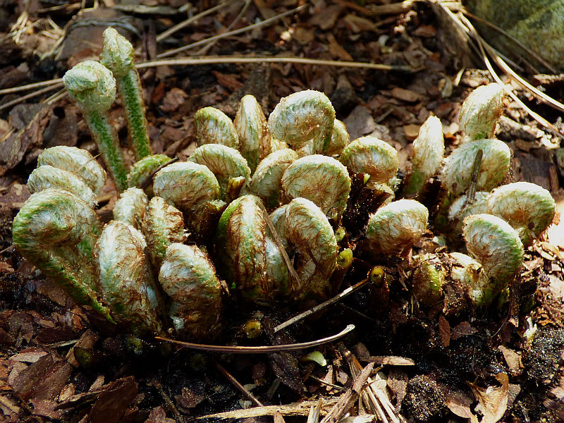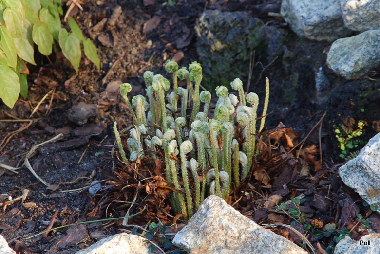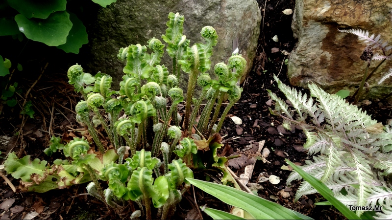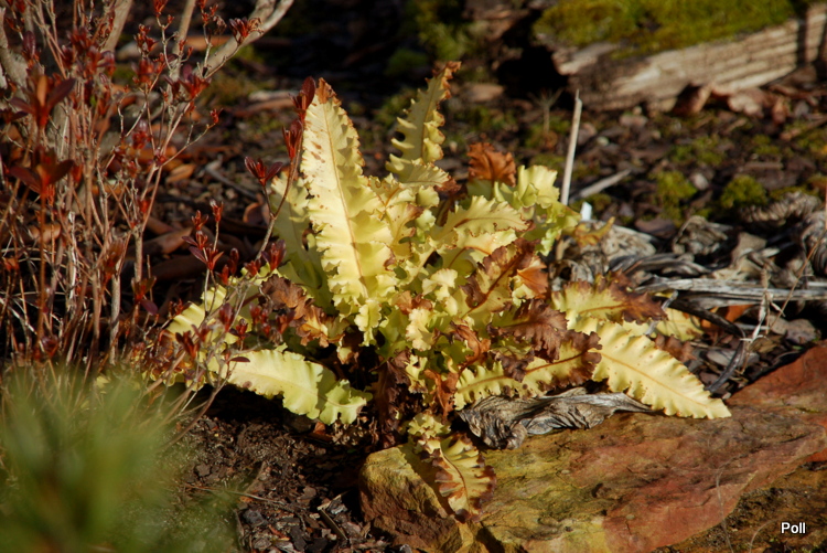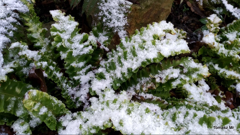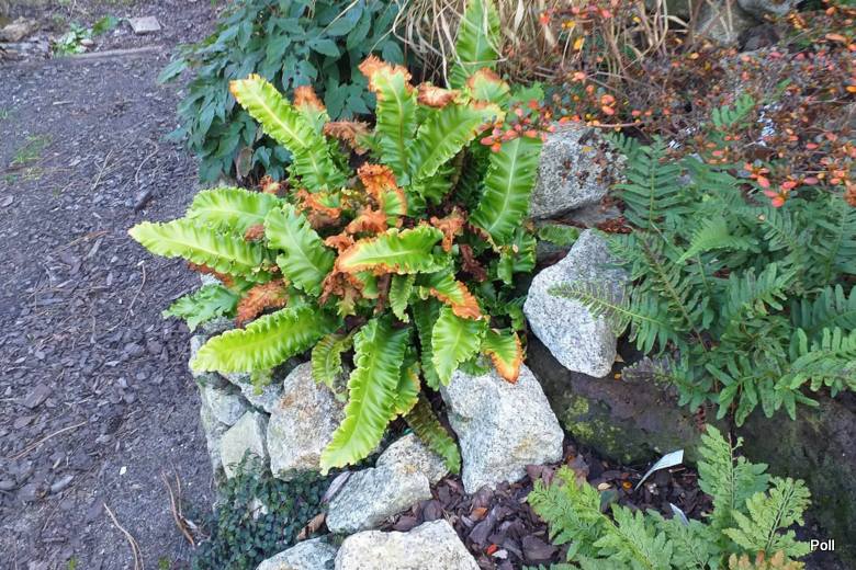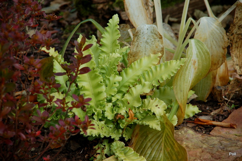 Mój języcznik 'Crispa' odczuł już przymrozki na... własnych liściach :silly: , co widać dobrze po zbrązowiałych brzegach. Do tej pory, odnotowaliśmy spadki temparatur do -8C. Po prawej, paprotka zwyczajna (Polypodium vulgare), na dole Polystichum aculeatum 'Zillertal'.