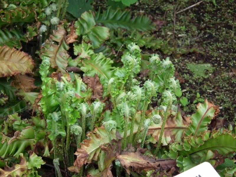 Asplenium scolopendrium 'Crispa' rozluźnił zwinięte serce, pastorały zaczynają rozwijanie
