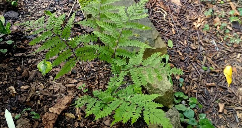 Młody, dwuletni egzemplarz Athyrium clivicola, który nie ma jeszcze typowych cech gatunku: