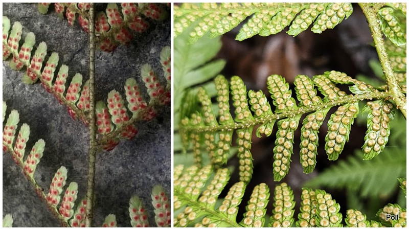 nerecznicy czerwonozawijkowej (Dryopteris erythrosora) (po lewej) są czerwone, u