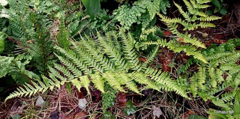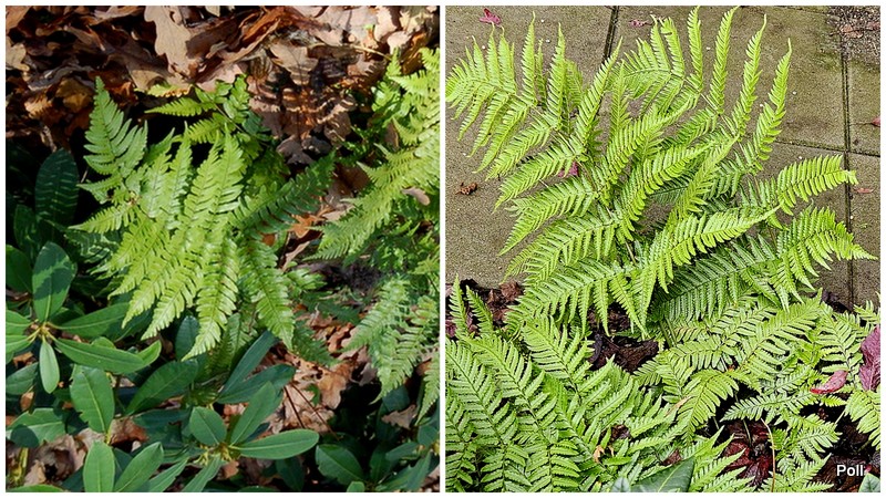 Nerecznica czerwonozawijkową (Dryopteris erythrosora) po lewej,