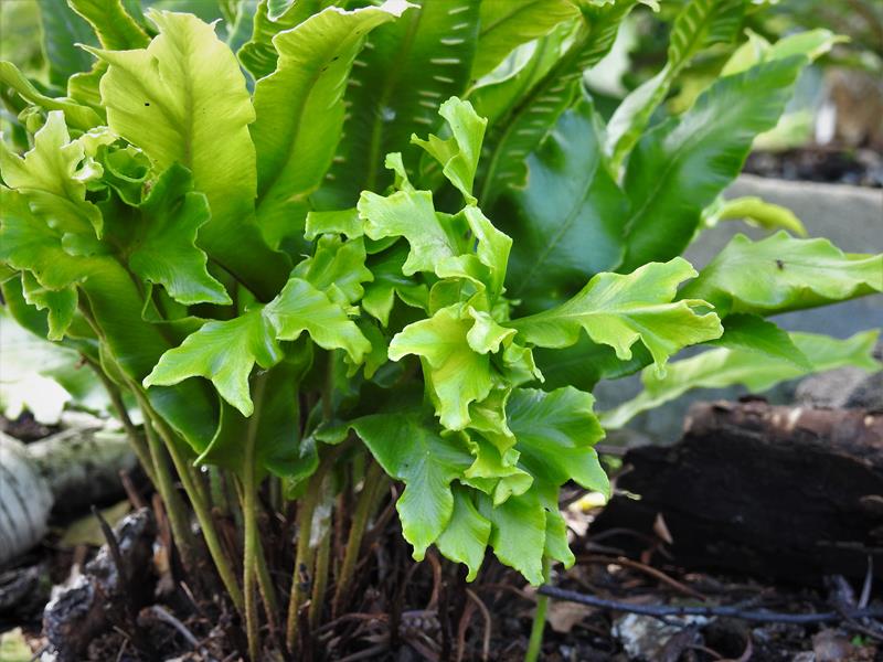 Asplenium scolopendrium). Frondy (liście) są postrzępione i rozgałęzione niesymetrycznie i dość chaotycznie. Każdy z liści wygląda przy tym nieco inaczej, gdyż w innych miejscach następuje podział, inaczej kształtują się pofalowane lekko grzebyki. Dzięki temu, cała roślina wygląda jak rozwichrzone, gęsto rozgałęzione drzewo.