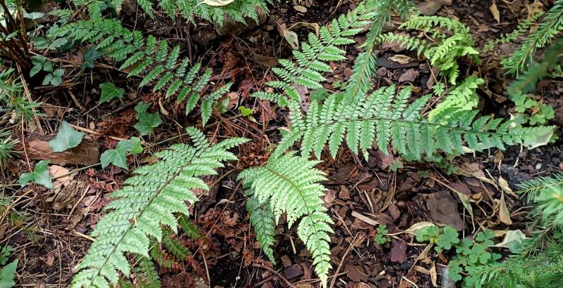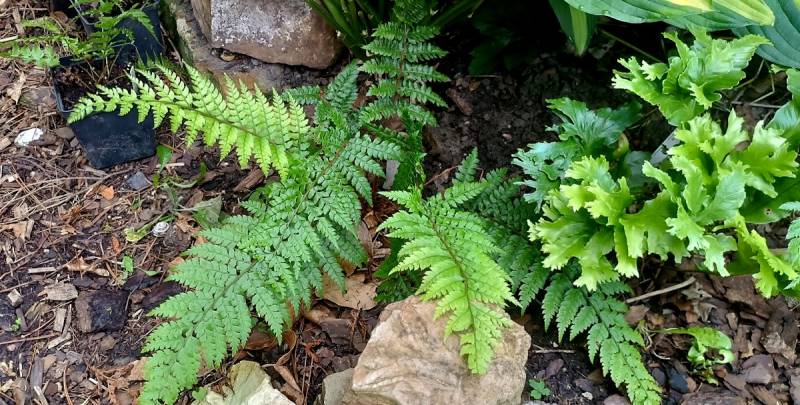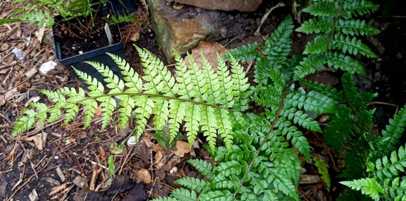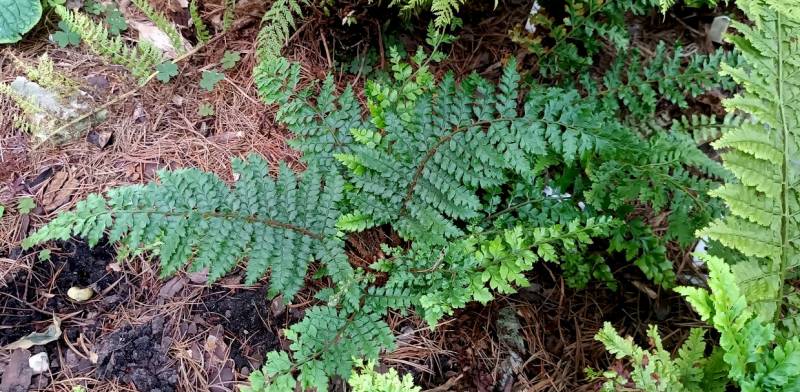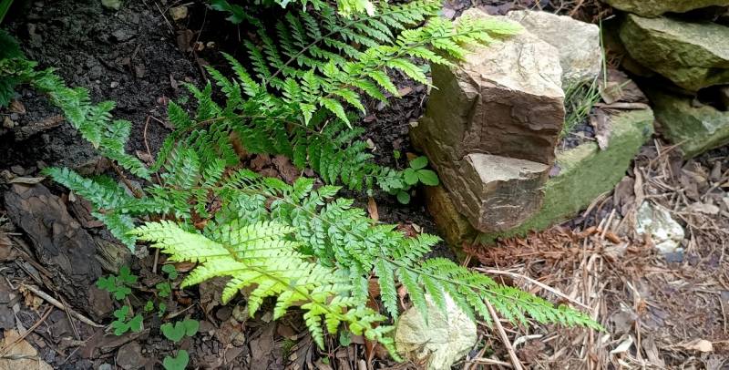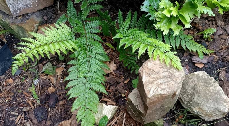 Jedna z moich kępek paprotnika Woronowa, która rośnie na lekko wzniesionej rabacie pod sztuczną cieniówką. Gleba jest tu żyzna, 'wzmocniona' dużą ilością kompostu liściowego i zleżałych zrębek, dlatego liczę, ze niedługo rozpocznie się jesienne widowisko.