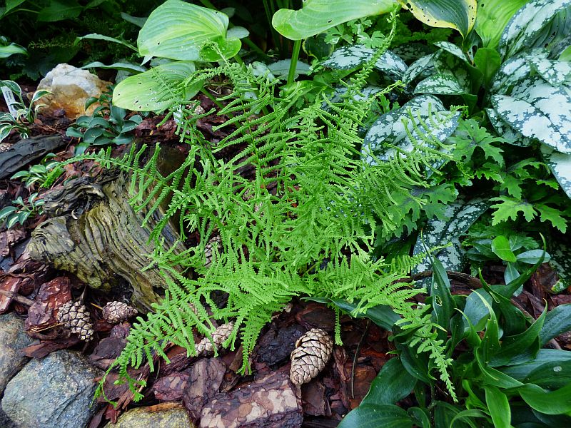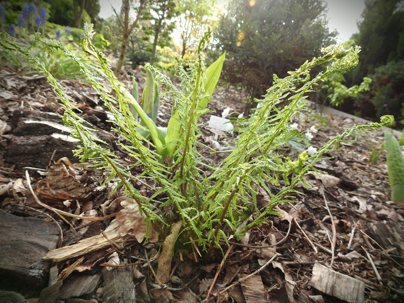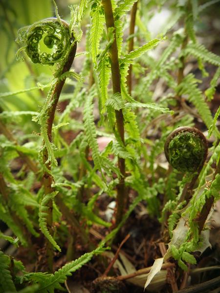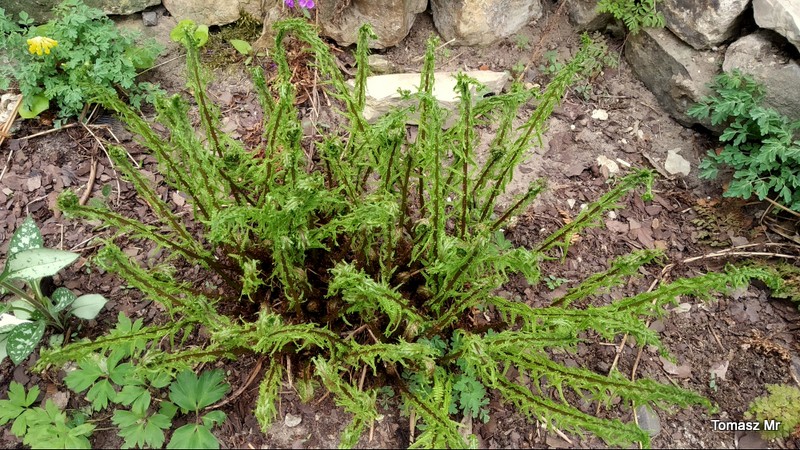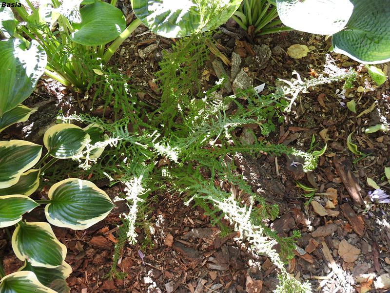 Paprocie tej odmiany, które rosną u mnie (mam ich kilka sztuk), faktycznie wiosną wypuściły dość jasne liście, które teraz, z upływem czasu ciemnieją, także łodyżki przybrały inny, ciemniejszy kolor podbity czerwienią. Być może bardziej dojrzałe będą całkowicie czerwone.