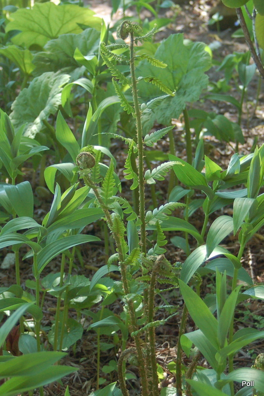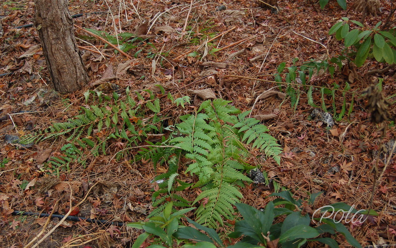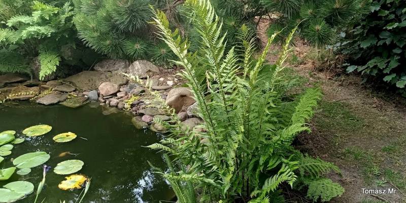 Tomaszu, jeśli w tym roku tez tak wybije, to obiecuję taka fotę i na boso i w..... no, w szpilkach, to nie. Może w crocksach? Dryopteris x australis, starszy, ale mniejszy egzemplarz na przeciętnie wilgotnym, czasem przesychającym stanowisku. Suszy ten gatunek niestety, nie znosi.