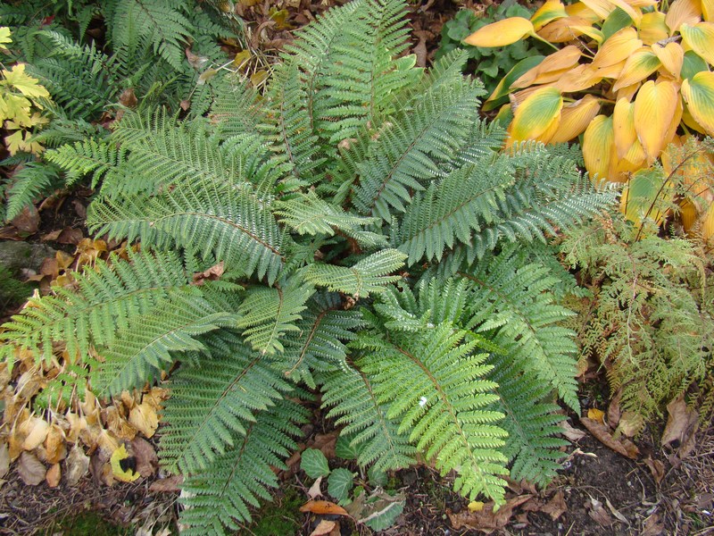 Paprotnik wielołuskowy jesienną porą - tego egzemplarza chyba jeszcze nie pokazywałam - rośnie od ok. 5-6 lat na stanowisku półcienistym pod miłorzębem. Słońce dociera do niego po południu. W tym roku mocno się rozrósł.