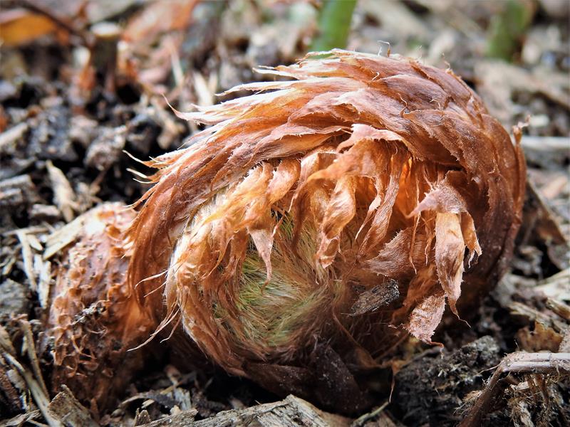 W ubiegłym roku mój najstarszy Polystichum polyblepharum mocno podmarzł podczas wiosennych przymrozków. Pastorały były krótkie, drobne i w małych ilościach. Za to w tym roku zanosi się, że całkowicie się zregenerował.