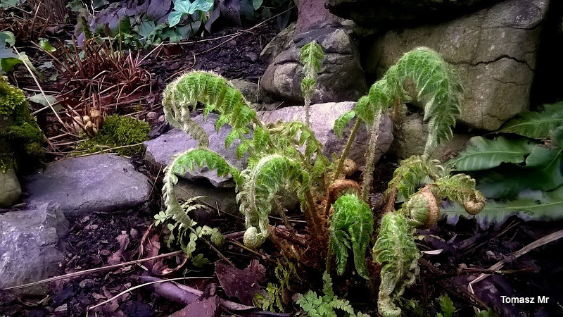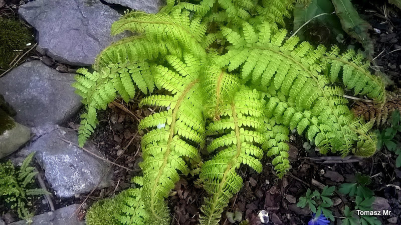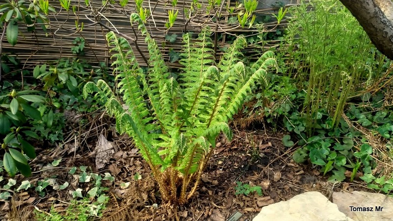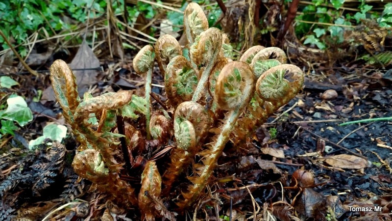 I aktualna fotka Polystichum pseudomakinoi. Oparł się ostatnim przymrozkom, czego nie mogę powiedzieć o podobnym Polystichum retrosopaleaceum, któremu niestety powykrzywiało końce liści.