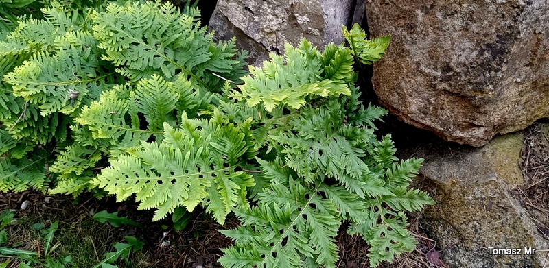 Polypodium cambricum 'Richard Kayse', na suchym stanowisku w murku oporowym . Zimuje bez okrywania, ale na przyzwoity wygląd trzeba poczekać do końca lipca ;)