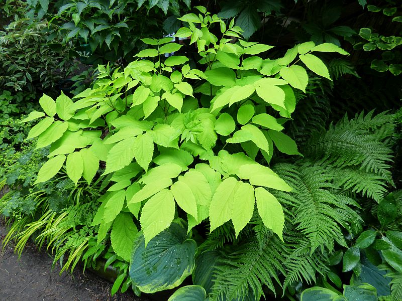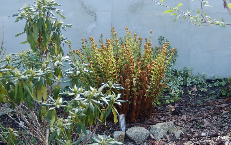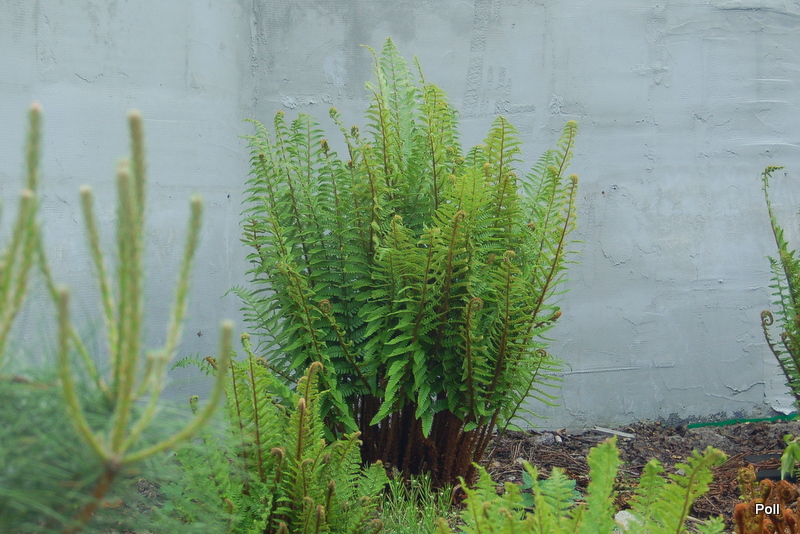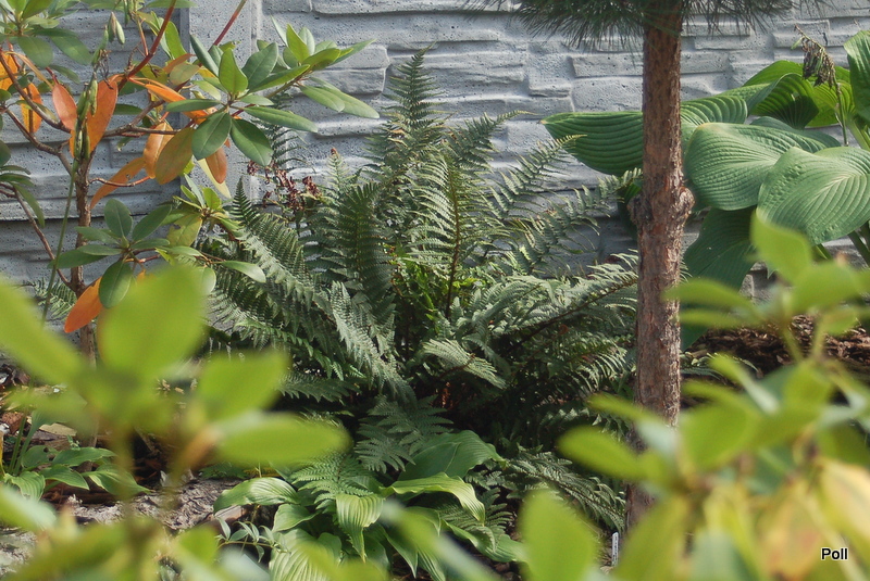 Moja nerecznica mocna mimo, że jest paprocią mocarną i największą spośród posiadanych, to jednak przegrywa walkę o dominację na rabacie... gwizdac owszem króluje w maju, ale już w czerwcu musi uznać wyższość (doslownie :silly: ) aralii sercowatej 'Sun King'... dopiero w październiku, gdy aralia zasypia, odzyskuje swoją pozycję zwyc