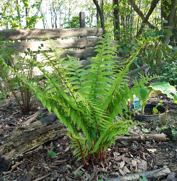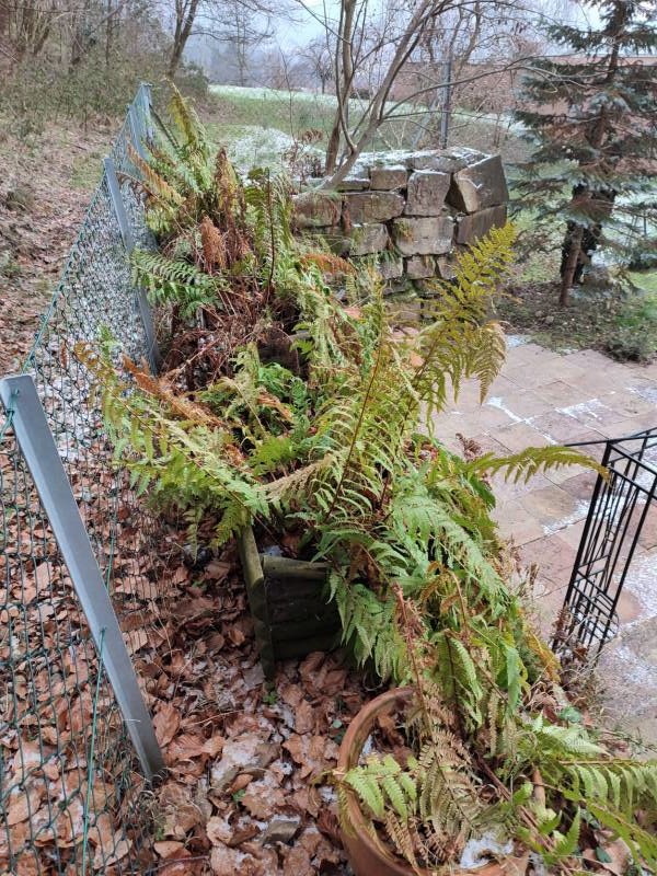 I do think it's about 20 years ago now that i took the individual from the woods at a mountain close to Frohnleiten, my home town. Until 2020 the fern grew at my parents' property in my small fern garden, where the rhizome grew upwards as a short stem. In May 2020 i gave the Dryopteris affinis to a customer where i worked to plant a potted Trachycarpus fortunei into his garden, and filled 4 large wooden containers with various native Dryopteris spp. and Athyrium filix-femina.