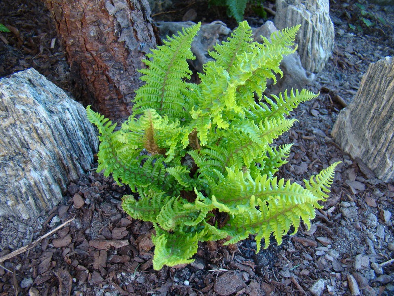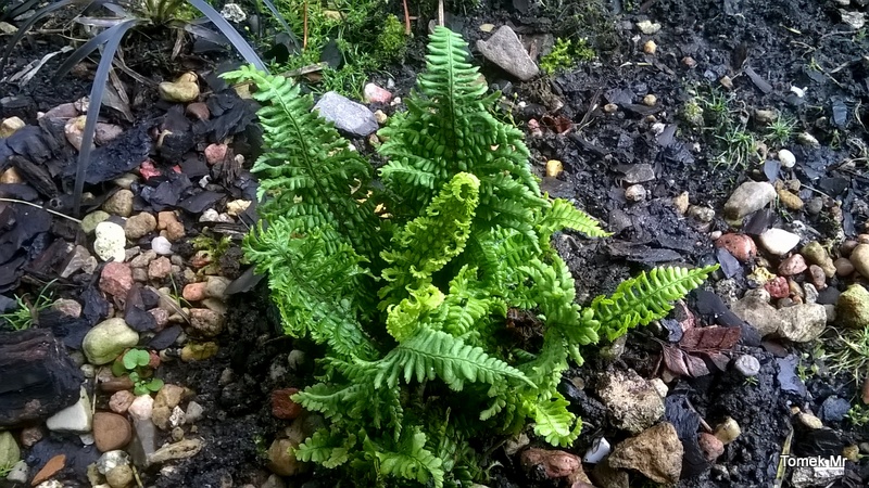Dla tego maluszka specjalnie przygotowałam na nowym stoku stanowisko, z dostępem porannego słońca. Jest wśród swoich :P , więc później, ocieniają go inne, większe nerecznice mocne.