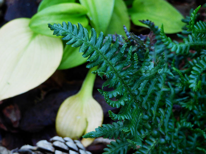 Szukałam niewielkiej paproci dla urozmaicenia hościanego towarzystwa na myszowisku... i oto jest, moja paprotna nóweczka, Dryopteris affinis 'Crispa Congesta'... uwieziona z Zielonych Progów zwyc