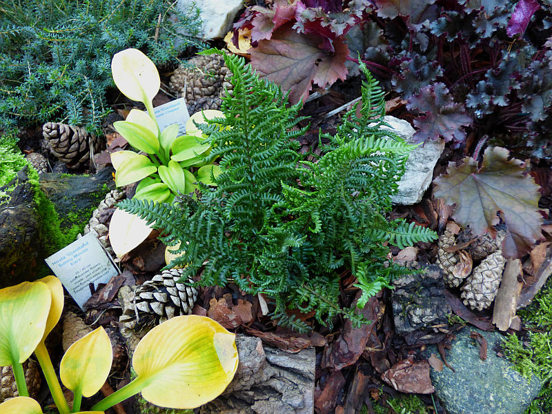 Dryopteris affinis 'Crispa Congesta' na wilgotnym stoku paprociowym
