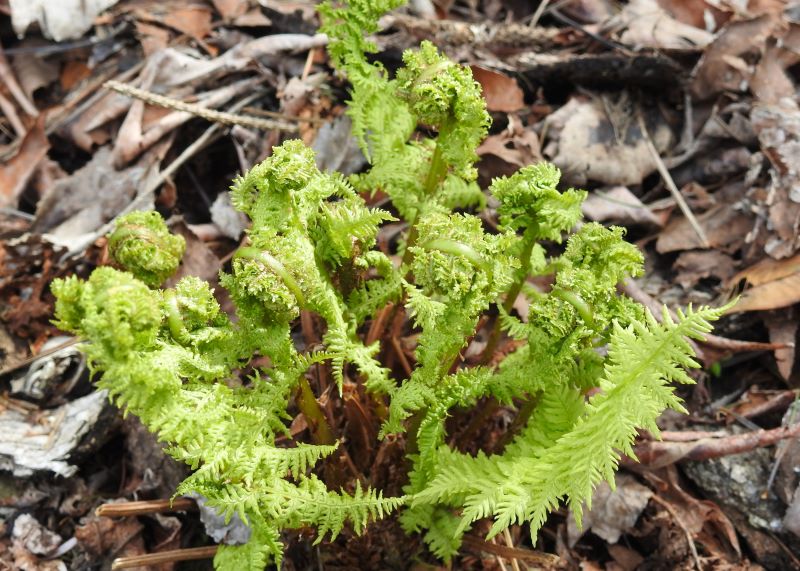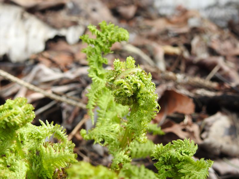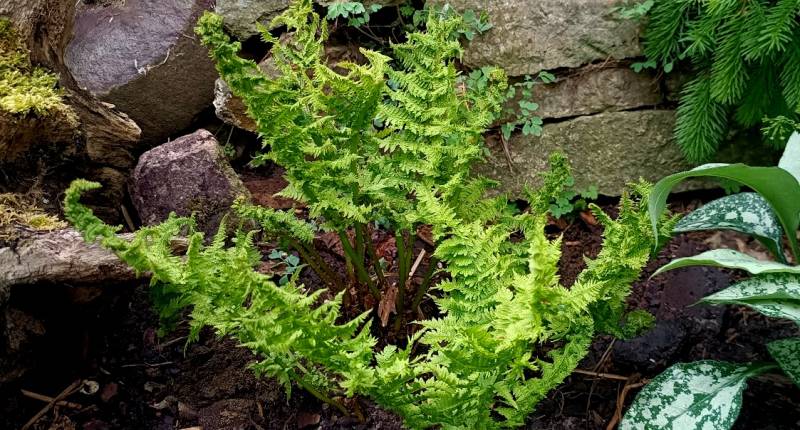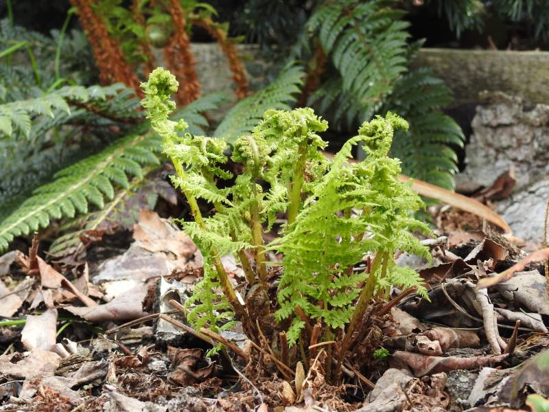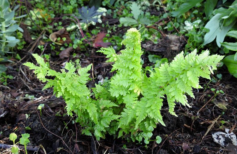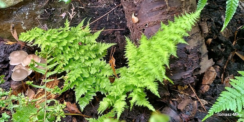 Athyrium filix-femina 'Plumosum Congestum' z siewu zarodników. Wegetowała zapomniana w końcu ogrodu. Dostała nową miejscówkę z zasobnym i wilgotnym podłożem. Wypuściła już 2 nowe liscie...nawet wyrosło kilka grzybów obok ;).