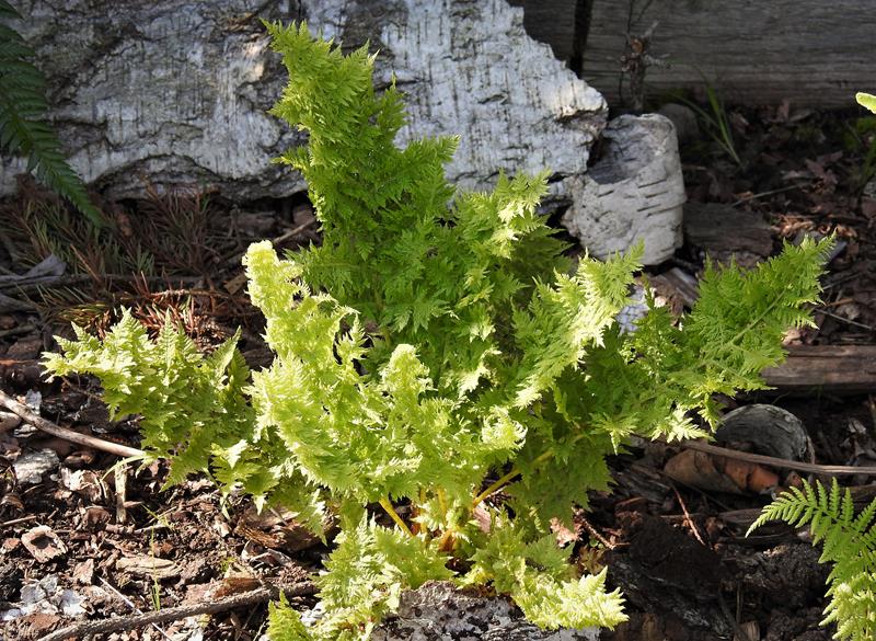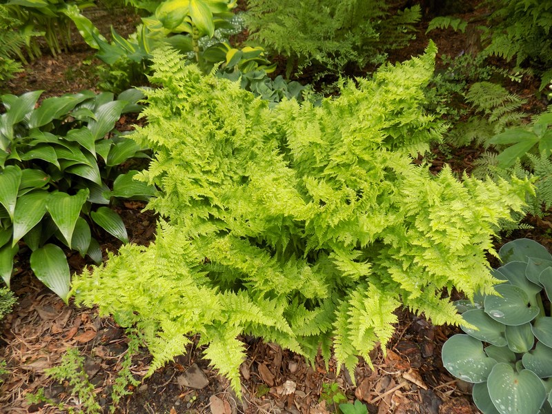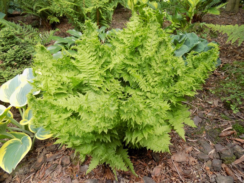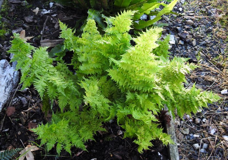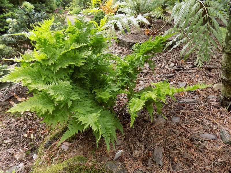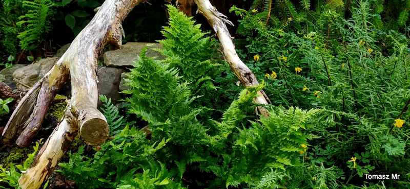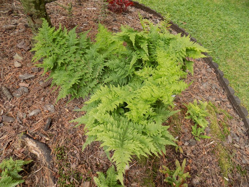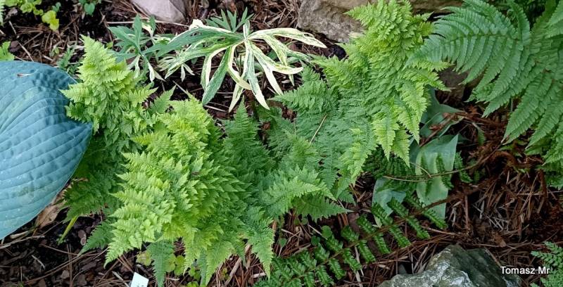 Athyrium filix-femina 'Plumosum Congestum', na stanowisku ze sporą ilością słońca. Wyjątkowo ciężko ją podzielić ponieważ wytwarza pieniek, który z czasem drewnieje i do podziału trzeba użyć ostrego noża ;)