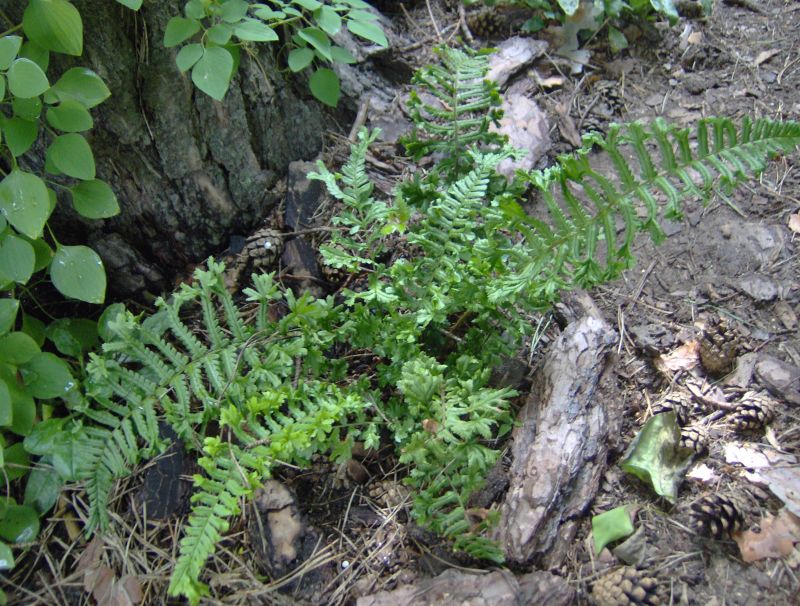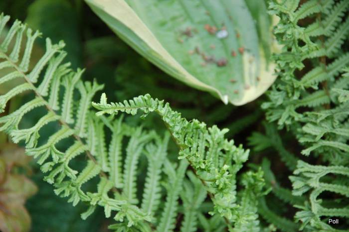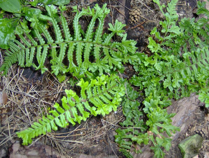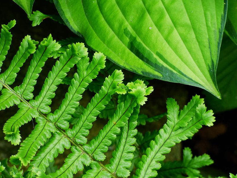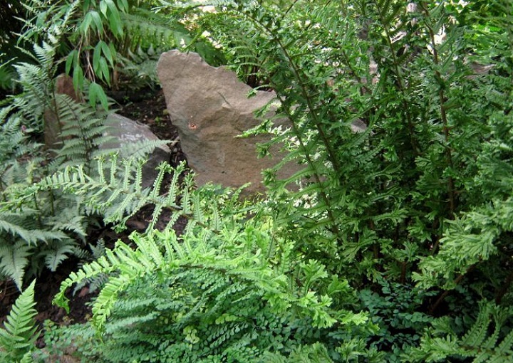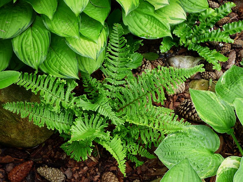 Zdjęcie z początku czerwca ( lewej dwa języczniki pospolite (Asplenium/Phylitis scolopendrium)- gatunek i Cristata Group