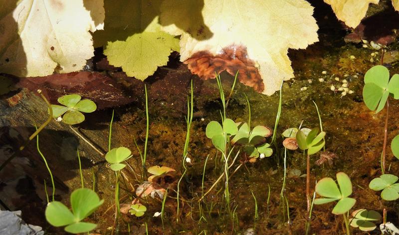 Okazuje się, iz gałuszka kulecznica jest bardziej odporna na przymrozki, niż marsylia. Po pierwszych, niewielkich przymrozkach Marsilea quadrifolia jest już brązowa a szczypiorki gałuszki, nadal żywo zielenieją w bagienku