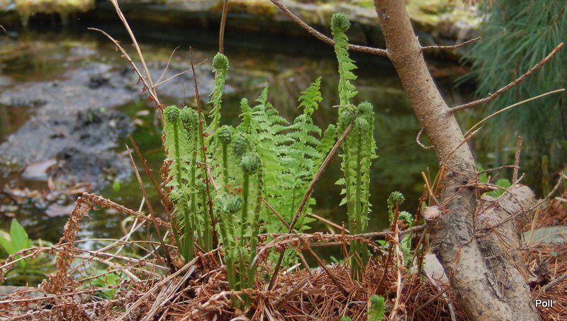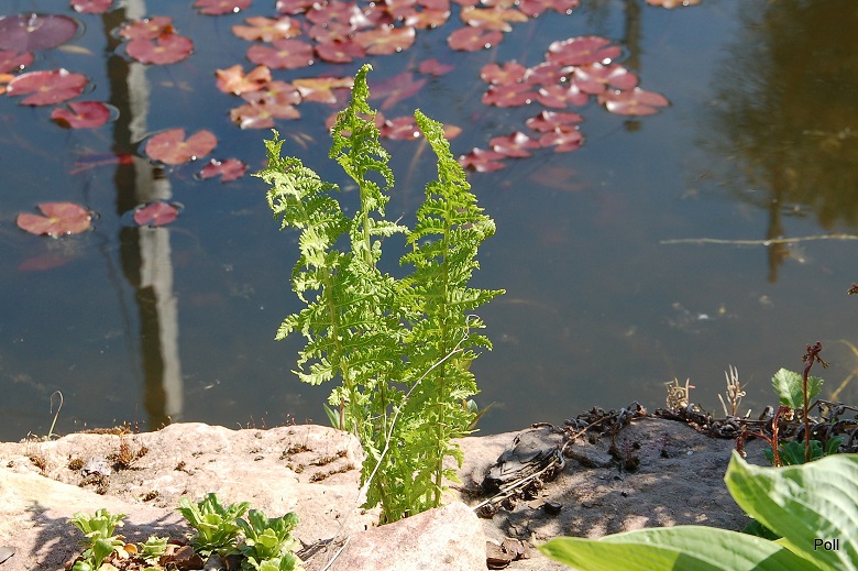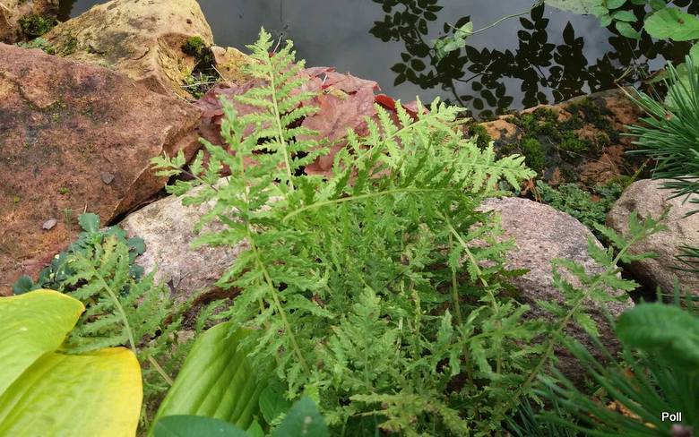 Matteuccia struthiopteris 'Erosa', po pierwszych przymrozkach (-3C) już stracił swoją urodę. I tak, w porównaniu z gatunkiem wygląda o niebo lepiej, bo ma osłonięte stanowisko i rośnie przy oczku wodnym.