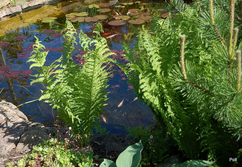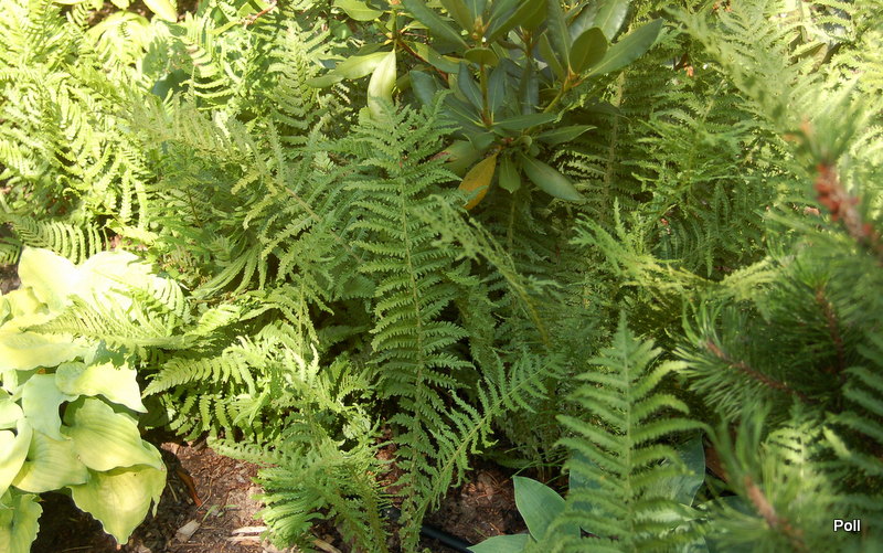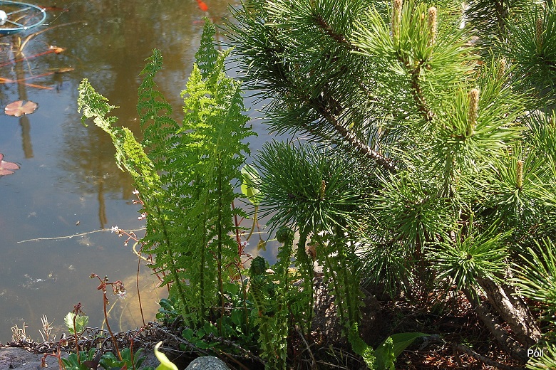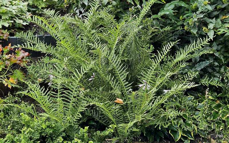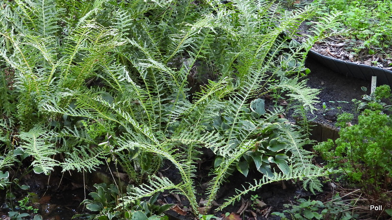 'Erosa', jak inne pióropuszniki strusie rozlazi się w każdym kierunku, wiec zaczęłam go nieco przerzedzać, zwłaszcza tam, gdzie zagraża jakiejś innej roślinie.