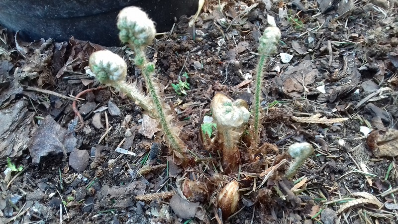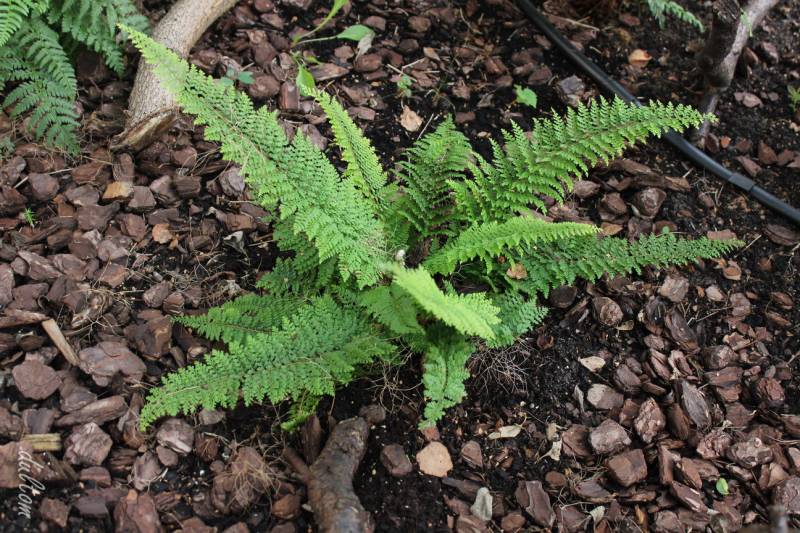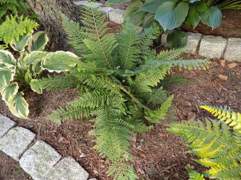 Polystichum setiferum Laxum, na zdjęciu z prawej strony.
