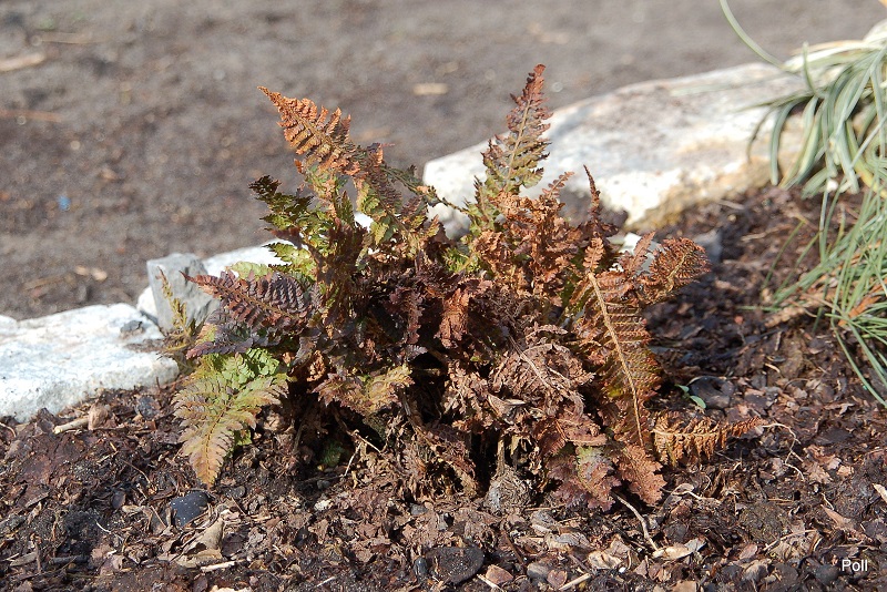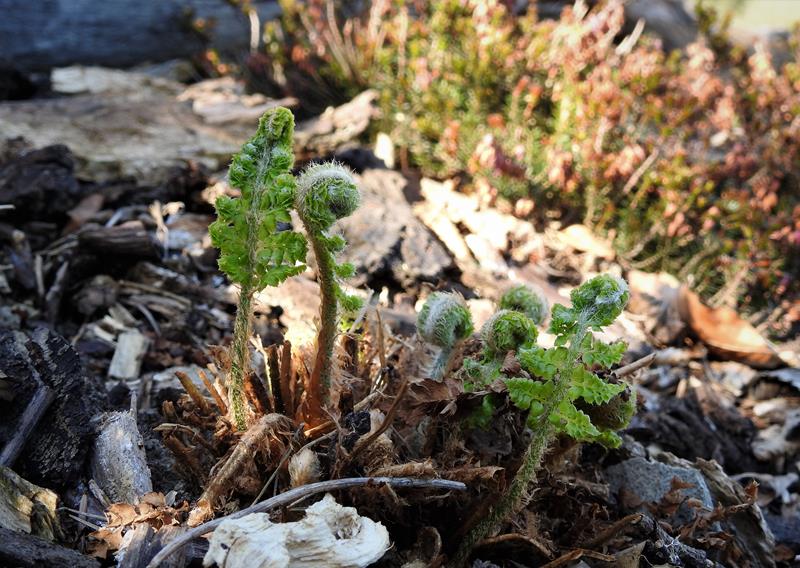 Polystichum Congestum,ten egzemplarz w tym roku ładnie wystartował,natomiast jego braciszek dopiero coś tam zaczyna wypuszczać,