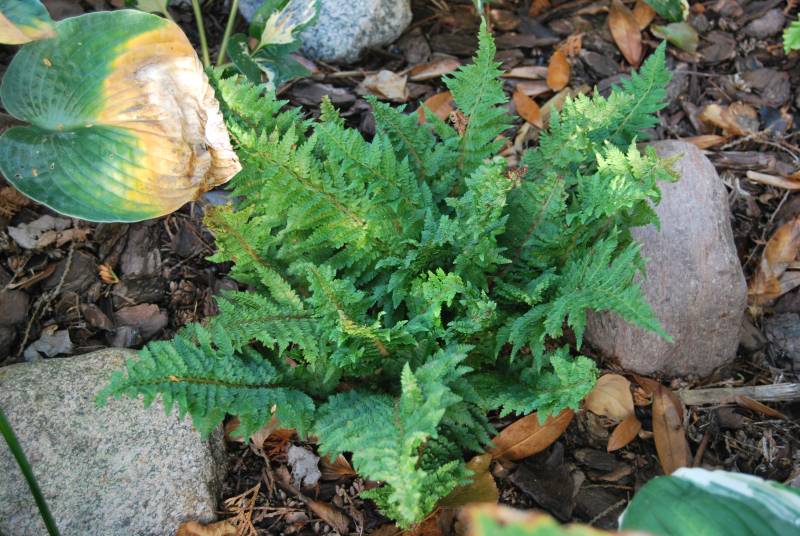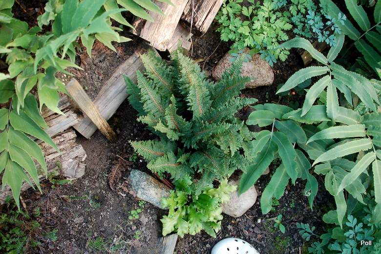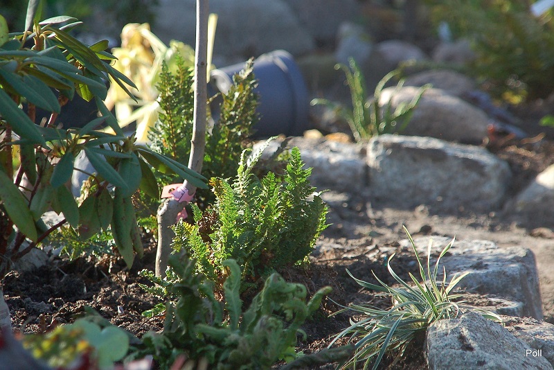 Mój paprotnik szczecinkozębny 'Congestum', po wystawie w Wojsławicach jest nieco...nazwijmy to...nadwątlony, ale mam nadzieję, że dojdzie do siebie. teraz trafił na nowe, nieco przestronniejsze miejsce na stoku paprociowym