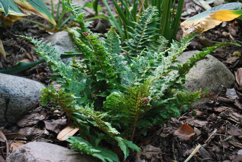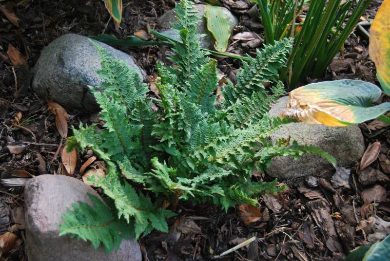 Jeden z moich dwóch paprotników Polystichum setiferum 'Congestum' - stanowisko suche, ze słońcem po południu (ok. 2 godziny). Posadzony 3 lata temu.