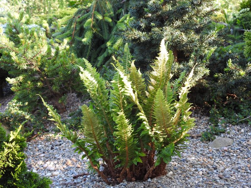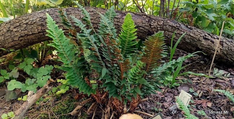 Najstarszy egzemplarz paprotnika szczecinkozębnego 'Congestum' dość słonecznej miejscówce szybko odprowadzającej wodę: