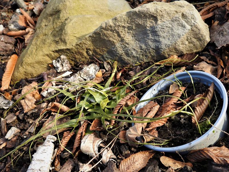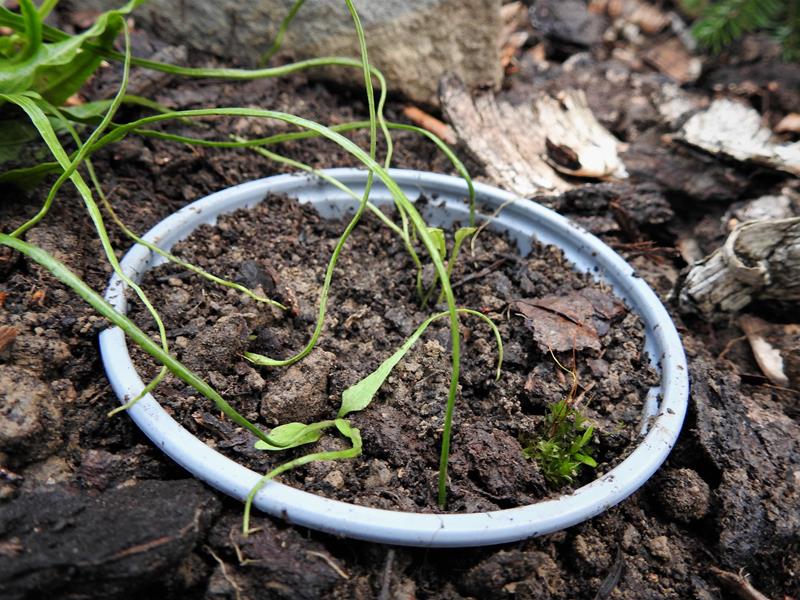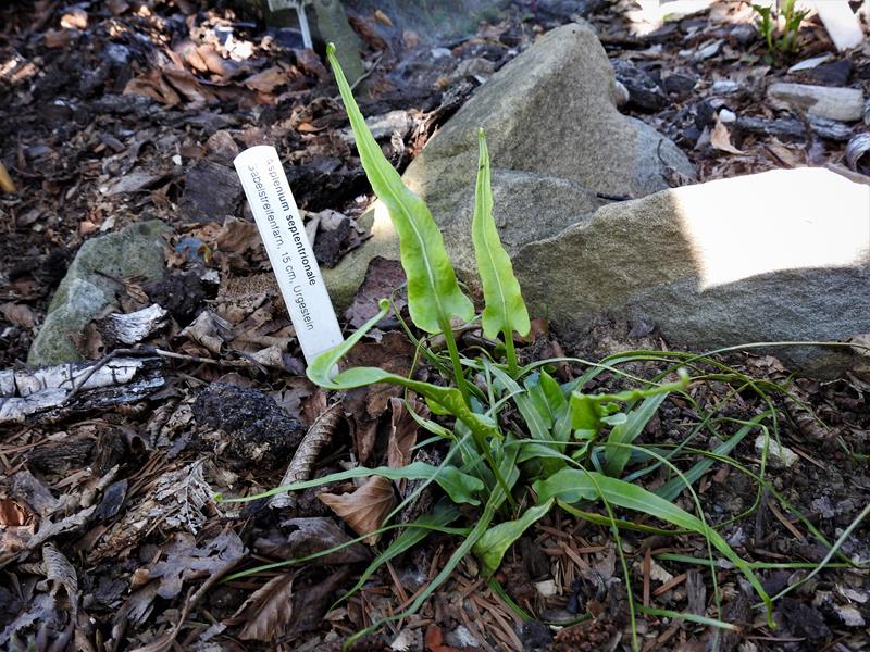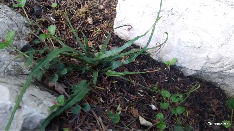 Asplenium rhizophyllum , mój ostatni nabytek. Dziś otrzymała miejscówkę na wzniesieniu typu skalniak, po jego zachodniej stronie.