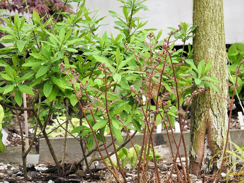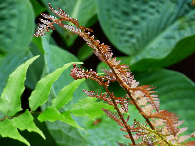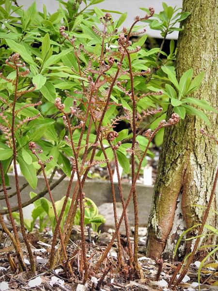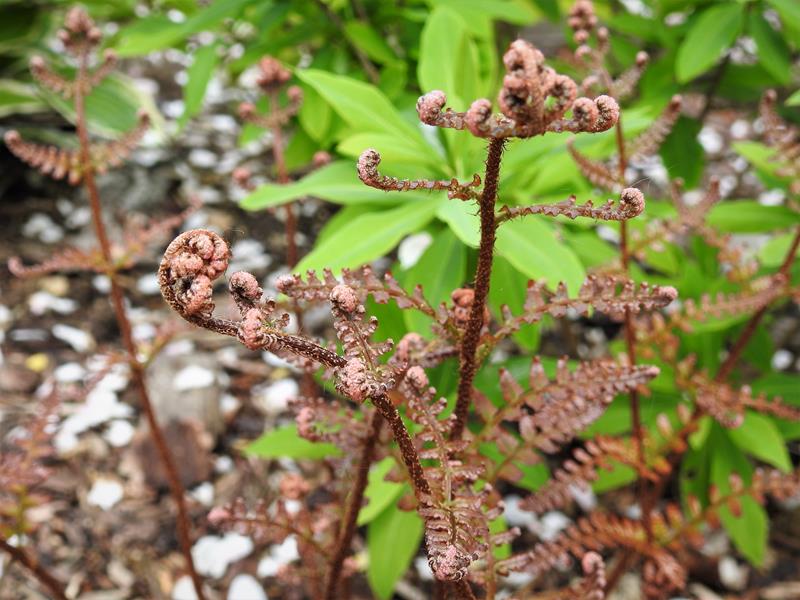 U mnie podobnie, jak u Gosi Dryopteris erythtosora var.prolifica, już rozwija pastorały, a nerecznice czerwonozawijkowe dopiero startują.