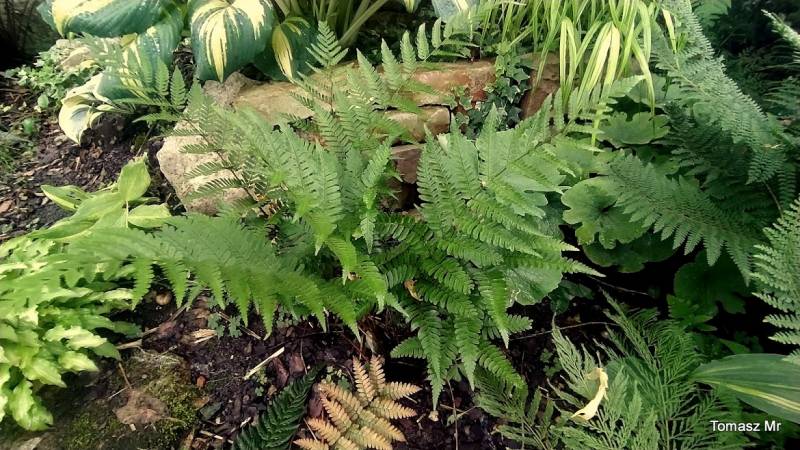 Te egzemplarze rosną pod sosną w półcieniu., Hosty do przeniesienia ale dla paproci to nie jest bardzo złe miejsce.