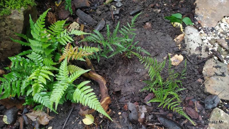 Dryopteris erythrosora Prolifica na mocno cienistym, wilgotnym stanowisku