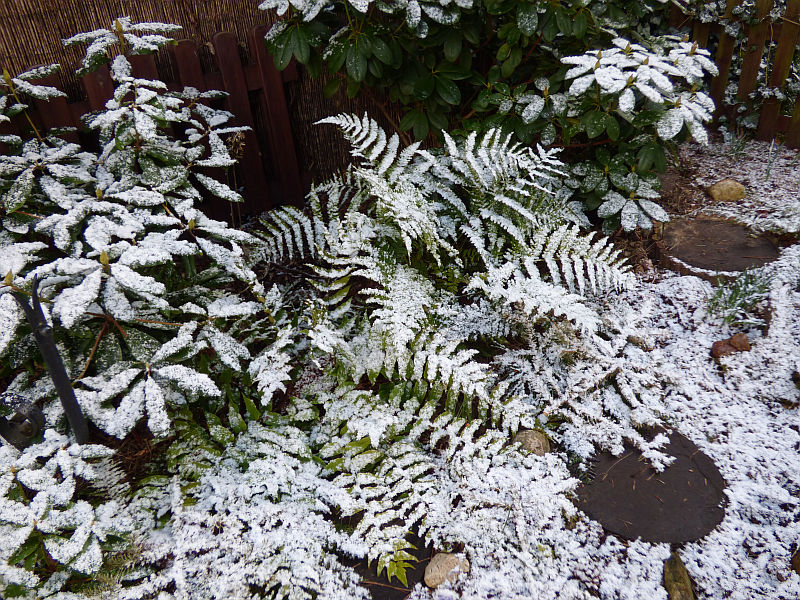 Dryopteris erythrosora var. prolifica wystartowała dynamicznie i wieloma pastorałami. Miejmy nadzieję, że nie będzie w najbliższych dniach przymrozków.