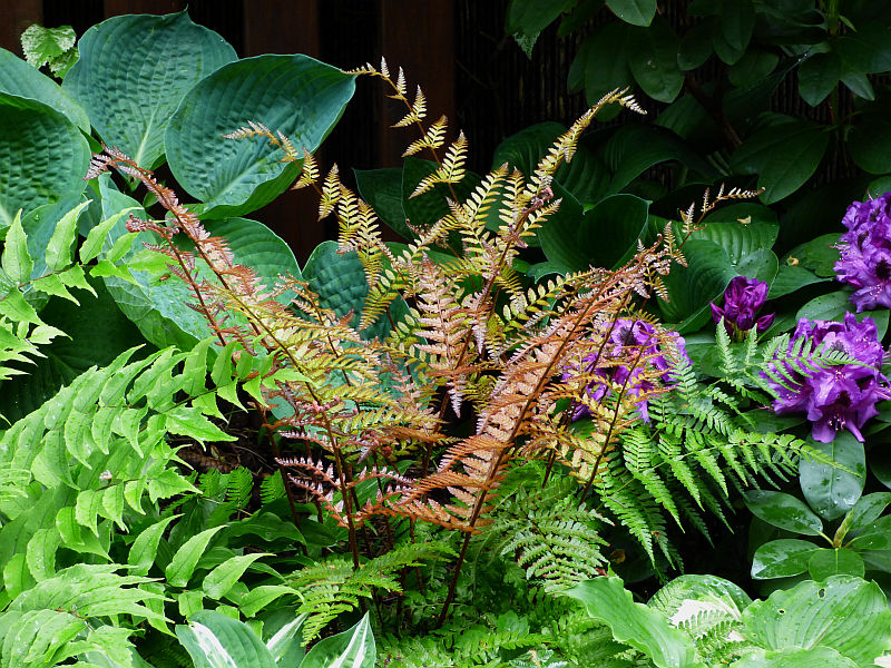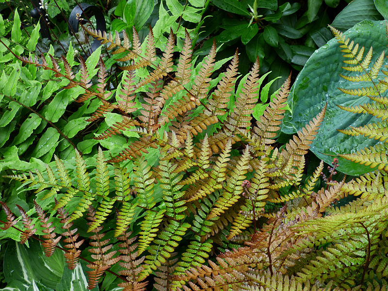 Lubię nerecznice a za czerwonozawijkami wręcz przepadam! Rosną tak po prawdzie po całym ogrodzie, najlepiej radzi sobie forma prolifica ( znaczy najszybciej przyrasta i nabiera ciała ).