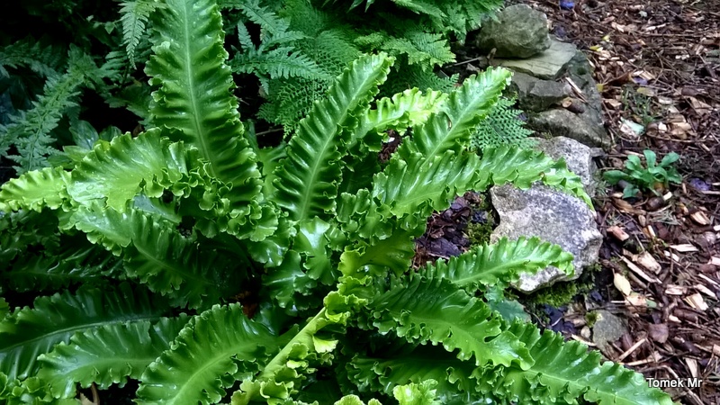 Asplenium scolopendrium 'Crispum Moly' na nowym , bardziej cienistym i osłonietym stanowisku