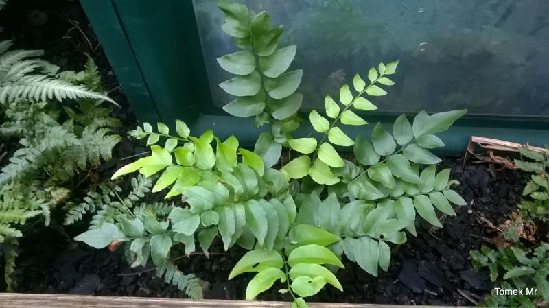 Cyrtomium lonchitoides, to juz nie taki maluszek, jak na poprzednich zdjęciach. Mocno poskoczyło na wilgotnym, półcienistym stanowisku