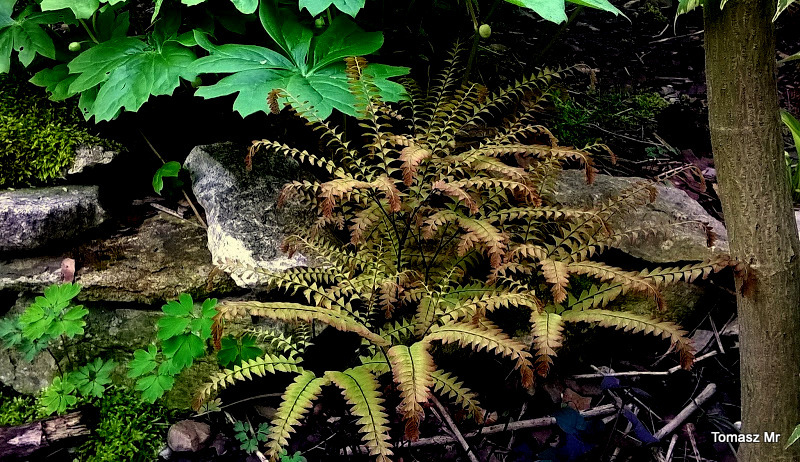 Adiantum aleuticum (palczaste frondy), inni zaś twierdzą, że jest raczej