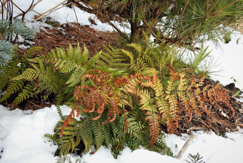 Dryopteris championii, mróz uszkodził tylko najmłodsze liście.
